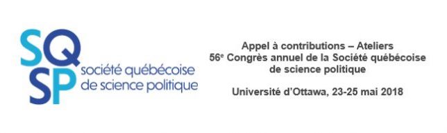 Autant des questions, parmi plusieurs autres possibles, auxquelles s’intéresseront les différents ateliers du congrès 2018 de la Société québécoise de science politique qui se tiendra à l’Université d’Ottawa du 23 au 25 mai 2018. Les chercheurEs de tous les domaines de la science politique, ainsi que les collègues œuvrant au sein de disciplines connexes, interpellés par ces questions sont priéEs de faire parvenir leur(s) proposition(s) d’ateliers et de tables rondes au plus tard le 31 octobre 2017 via la plateforme prévue à cet effet. Les organisateurs accueilleront également toute proposition qui, sans nécessairement porter sur le thème du congrès, touche la science politique. Dans tous les cas, une proposition doit comprendre :