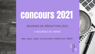La Société québécoise de science politique (SQSP) a le plaisir de vous annoncer son deuxième concours de bourses de rédaction pour le doctorat à partir de la 4e année. Les candidat-es en cours de rédaction d’une thèse en français sont invité-es à soumettre leur dossier de candidature avant le 1er juin 2021.